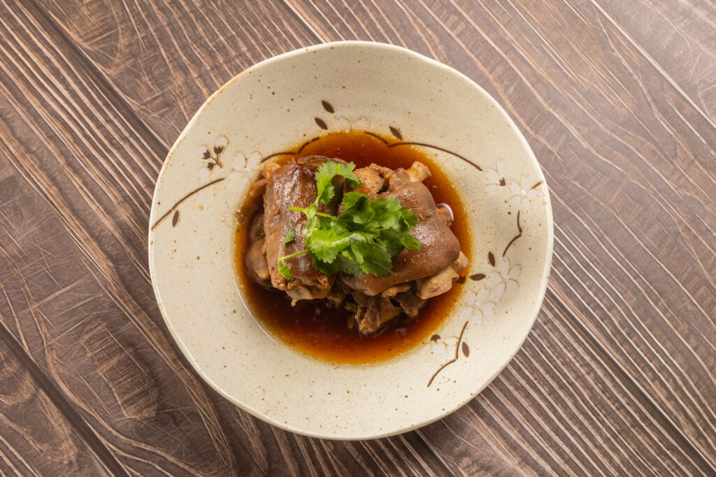 Pé de porco cozido lentamente no tradicional molho kakuni, resultando em uma textura macia e um sabor rico e profundo. Uma iguaria japonesa que encanta com sua combinação única de sabores.